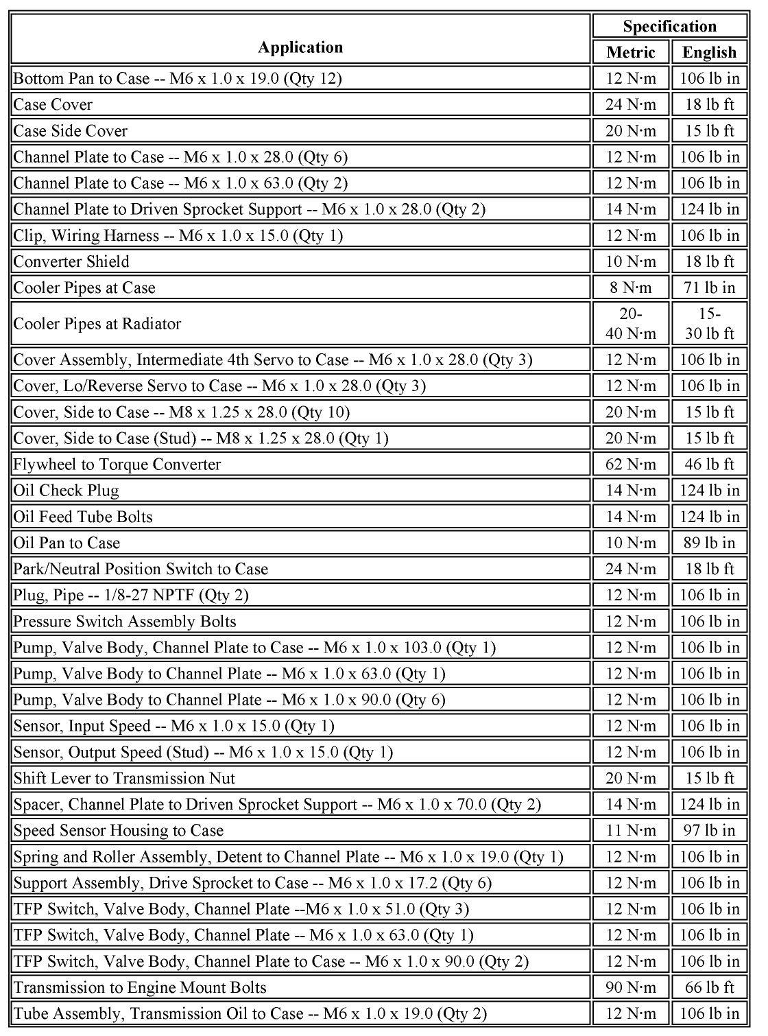 - Flywheel to Torque Converter - 46 ft.lb.