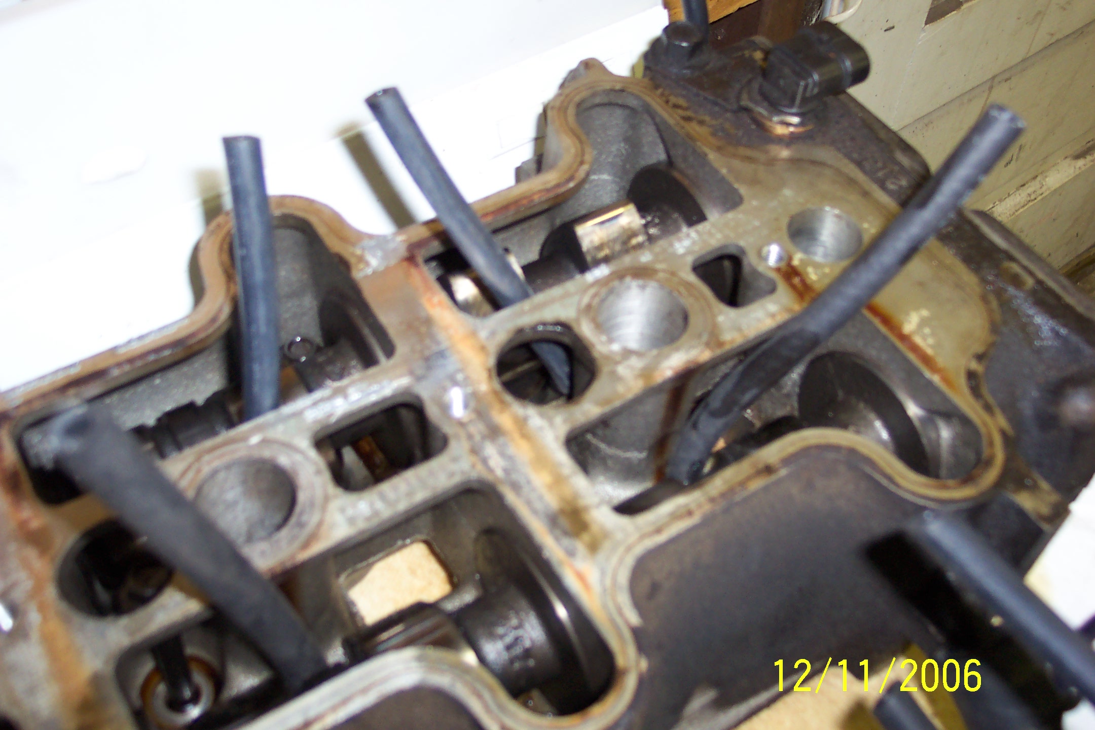 The fuel hose has to be put between the lifters against the "floor" of the cam carrier. The problem is the spark plug "tunnel" is in the way of pushing the hose straight in at a shallow angle, so you have to start the hose in on a steep angle, then turn in underneath the cams staying low between the lifters.