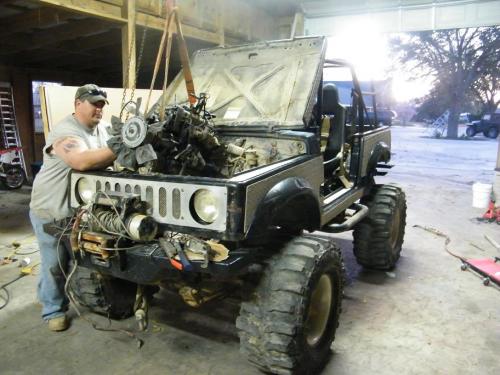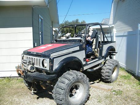 Hi, my name is Dave, and i've been working on my 4x4 sami and finally got my hands on a 82 2.8l chevy engine. right now it's a work in progress but progression will be fast because i need everything done by end of May this year. I just got in my mods for the engine which consist of a new edelbrock intake manifold, holley 4 bbl carb (modified), MSD ignition sys. with rev limiter, zoomies that will come straight out the hood, and a high performance edelbrock Cam shaft. with these mods i should be running very close to if not over 200 hp and 235 lbs/ft torq. the sami is lifted with SPOA and sus blocks, and i will be adding the yj spring kit for extra flex. i will also be running a 200R4 tranny hooked to a 4:1 tcase, the axles are yota axles with 538 gears and have been welded and locked front and rear. tires are 35" modified boggers which i hope to change to 44s in the near future.