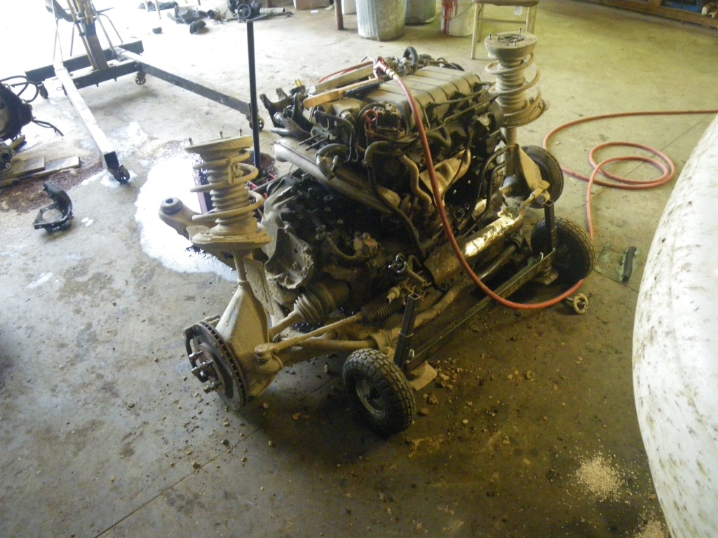 Here is a cradle for the back of the sub frame that I made to make the swap go a little faster. Just lower the frame and bolt it on then use it's wheels with a floor jack and roll the powertrain out from under the car.