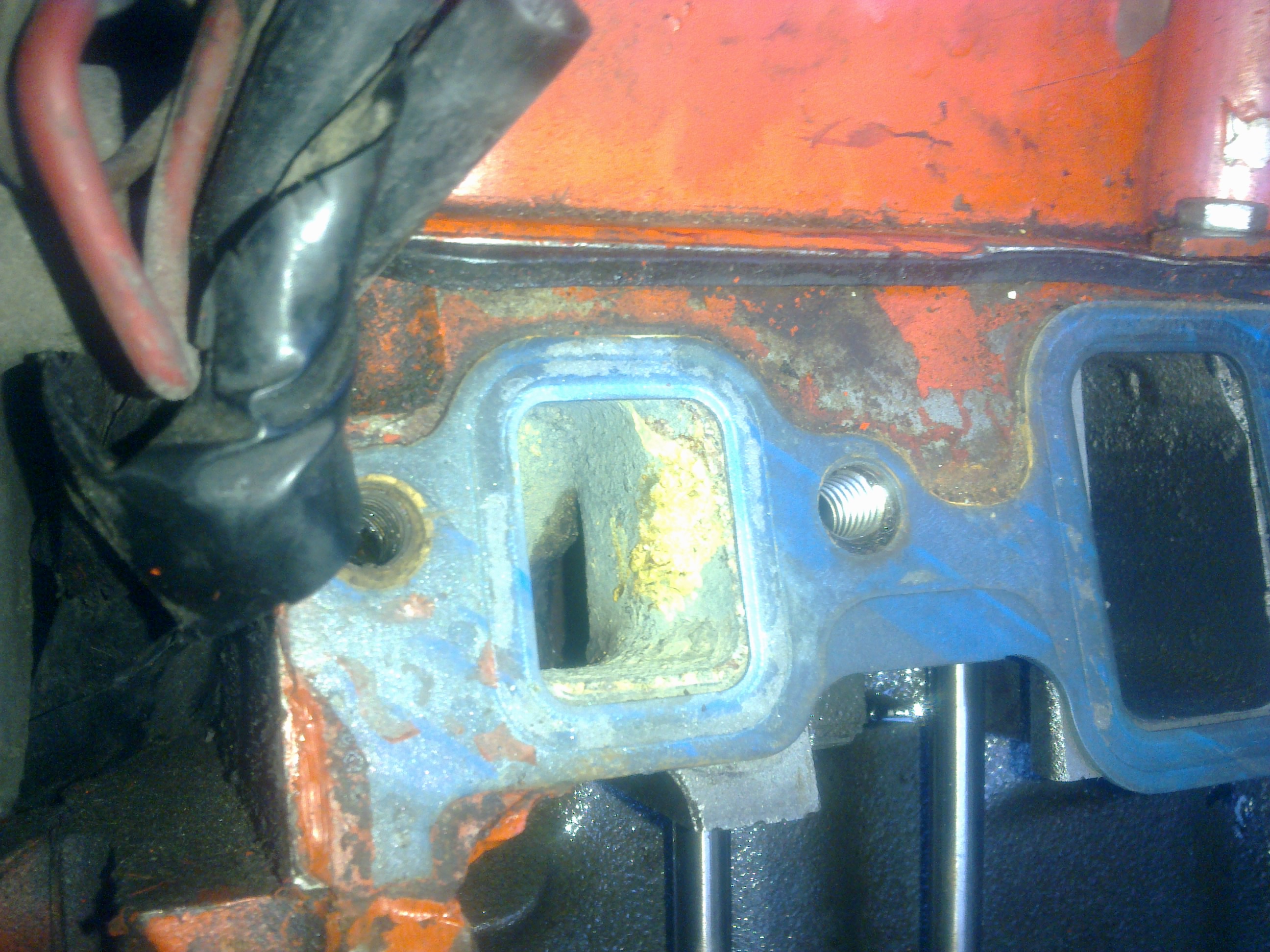 That nasty port looks like a water jacket to me. The crud is just deposits from the water. I would have scraped out what I could and moved on. They are always ugly. If you look at the first head pic, the Intake Ports are on the left and the Exhaust Ports are on the right. They still have the headers attached over them.