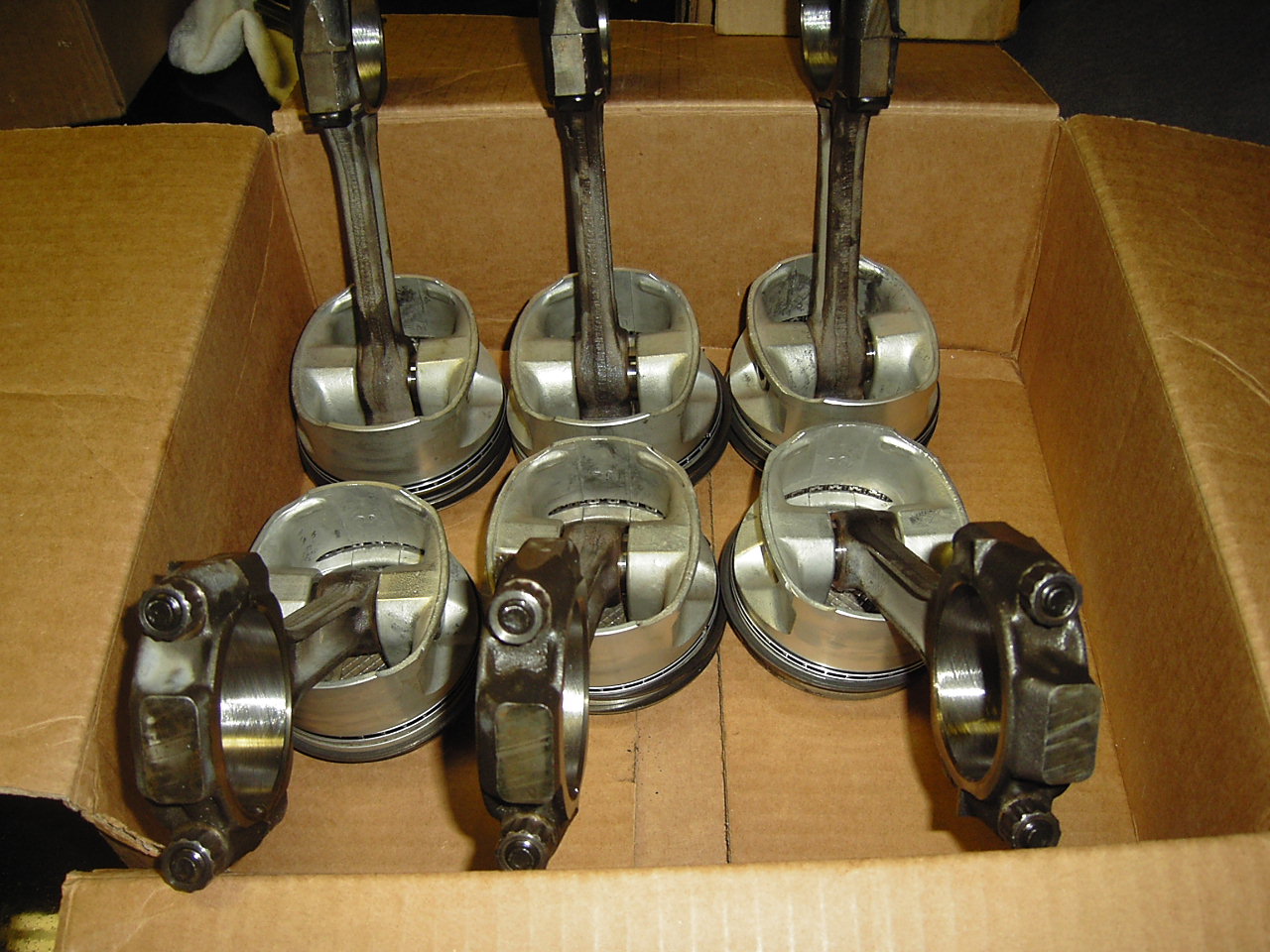 2. 3.4 pistons/rings (.020 over) used, but with less than 2k miles on them probably 1K, with rods that have been reconditioned. I planned to re-use them in this block, but I had to go .040 over to clean up the block I bought. $200.