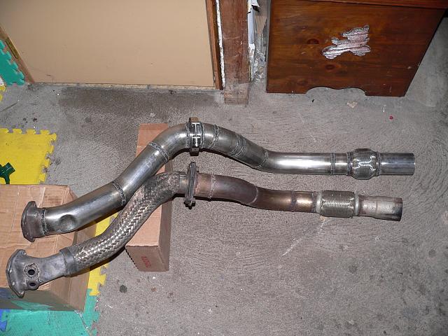 Trying to figure out how much interest is in a tgp 3 inch downpipe. I have one on my car right now it uses a stock 5 bolt flange modified for a 3inch pipe with a louvered style over a weave style flex pipe and a v- band clamp. I have no idea whether it will fit on an automatic trans and with an abs unit installed. I have it on a getrag 282 and a 284 with a regular vacuum booster. Modfication for fitment?? You will have to slightly custom fit the heat shield by the power steering rack on the fire wall and by the cat using a ball peen hammer. These will by made for cars without a catalytic converter that will have to be added by the installer. All welded sections inside the pipe will be smoothed for flow. I am very anal about this.. All downpipes will be made stainless and gas not flux wire. the unit on my car was a prototype. I will also need to know location of O2 sensors and if youre using stock t25 or sr20 5 bolt flange. If I dont get a core I will have to substitute flange. I personally like to use the stock one since its very thick and contours well.