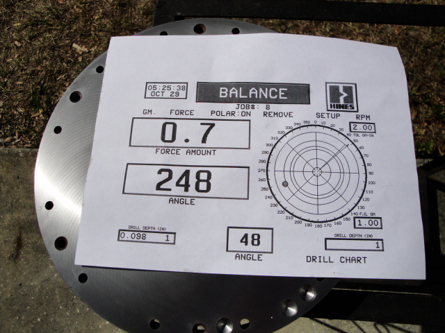 Rotating assembly is balanced. Total weight loss ~ 1.75 lbs
