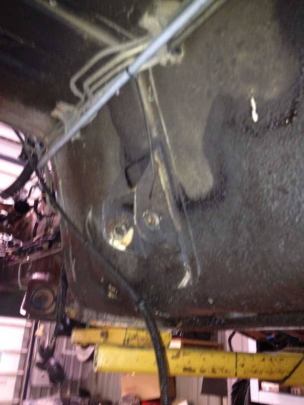 The car comes apart pretty typically. I was trying to drop the entire driveline out the bottom of the car, but due to the engine sitting at quite an angle, this proved to be more difficult than it was worth, so out the engine crane comes and the engine and trans are removed through the top. I then remove the front crossmember, so that I could lower the car over the new engine and trans.