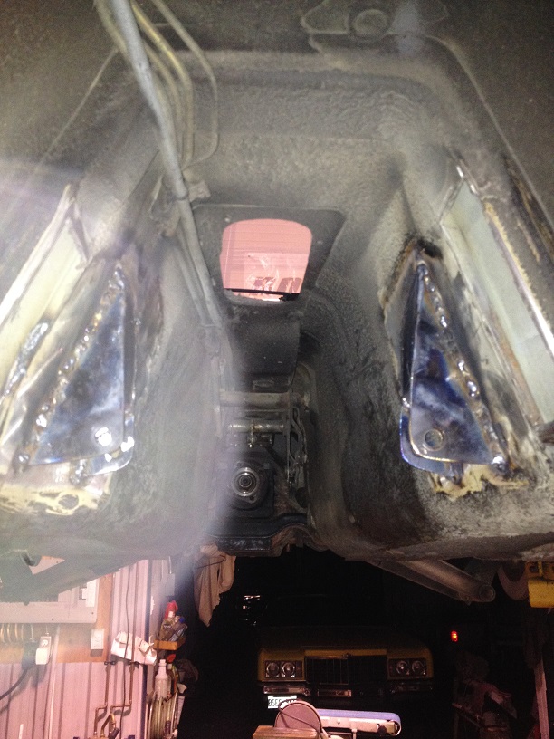 I HAVE to see the new drivetrain sitting between the frame rails before I go home. Keep in mind I've already mocked up the LX9 in teh car a few years previously, when I pulled the L28 for some maintenance, so I know basically what it's going to look like, but I need to see the headers, and the belt system in there, I just have to.