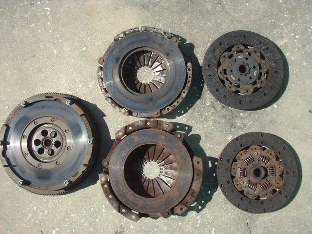 The 6spd clutch is at the top. Take note of the hot spot locations in the flywheel and how they corraspond with the areas of missing metal in the lip on the perimeter. The same thing happens to cylinder heads when you go hog wild on them during a porting session or at least to me when I did it to my chevy heads, didn't take long to make the connection with the higher temps.