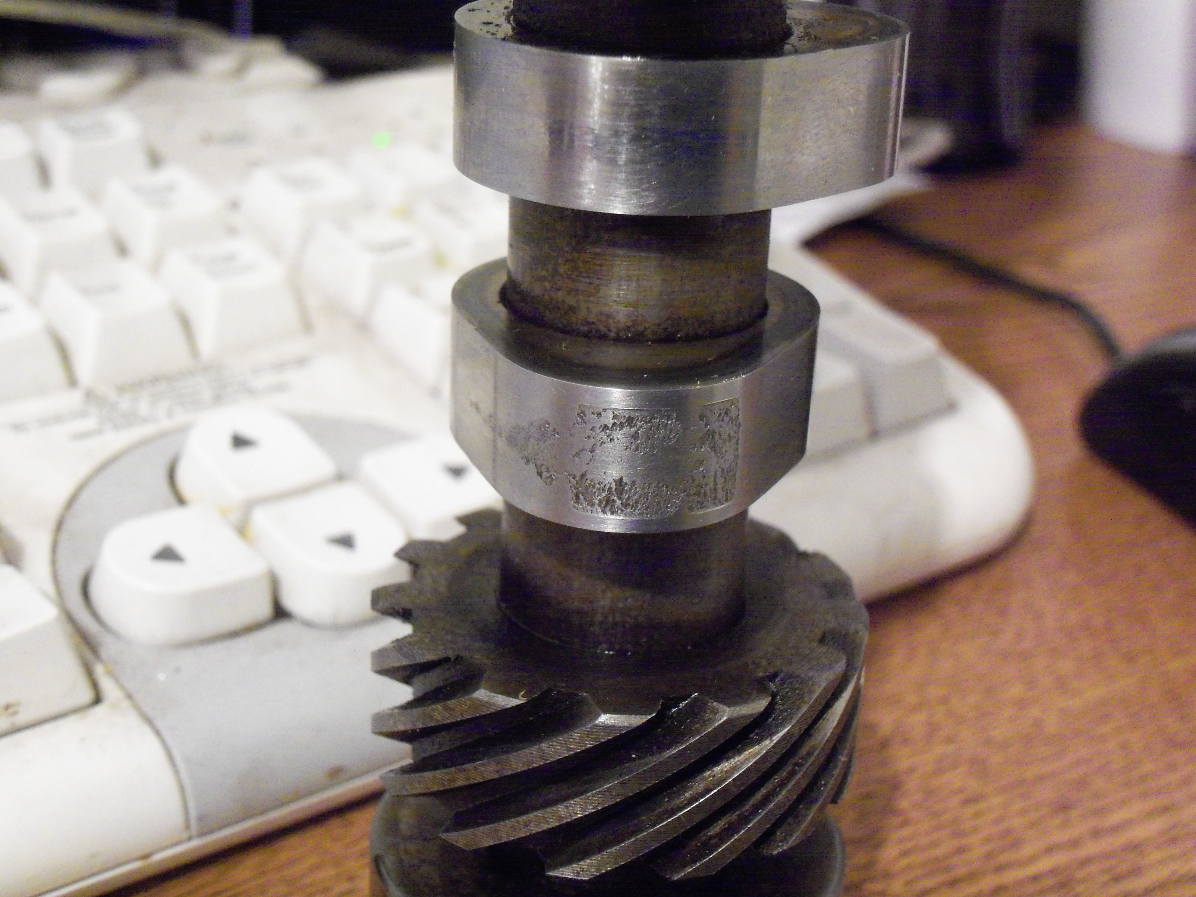 So I finally tore down the 3100. I was cleaning the camshaft when I discovered this on the lobe closest to the oil pump drive gear: