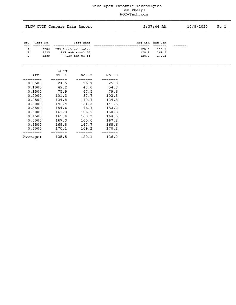 Valve comparison on the flowbench